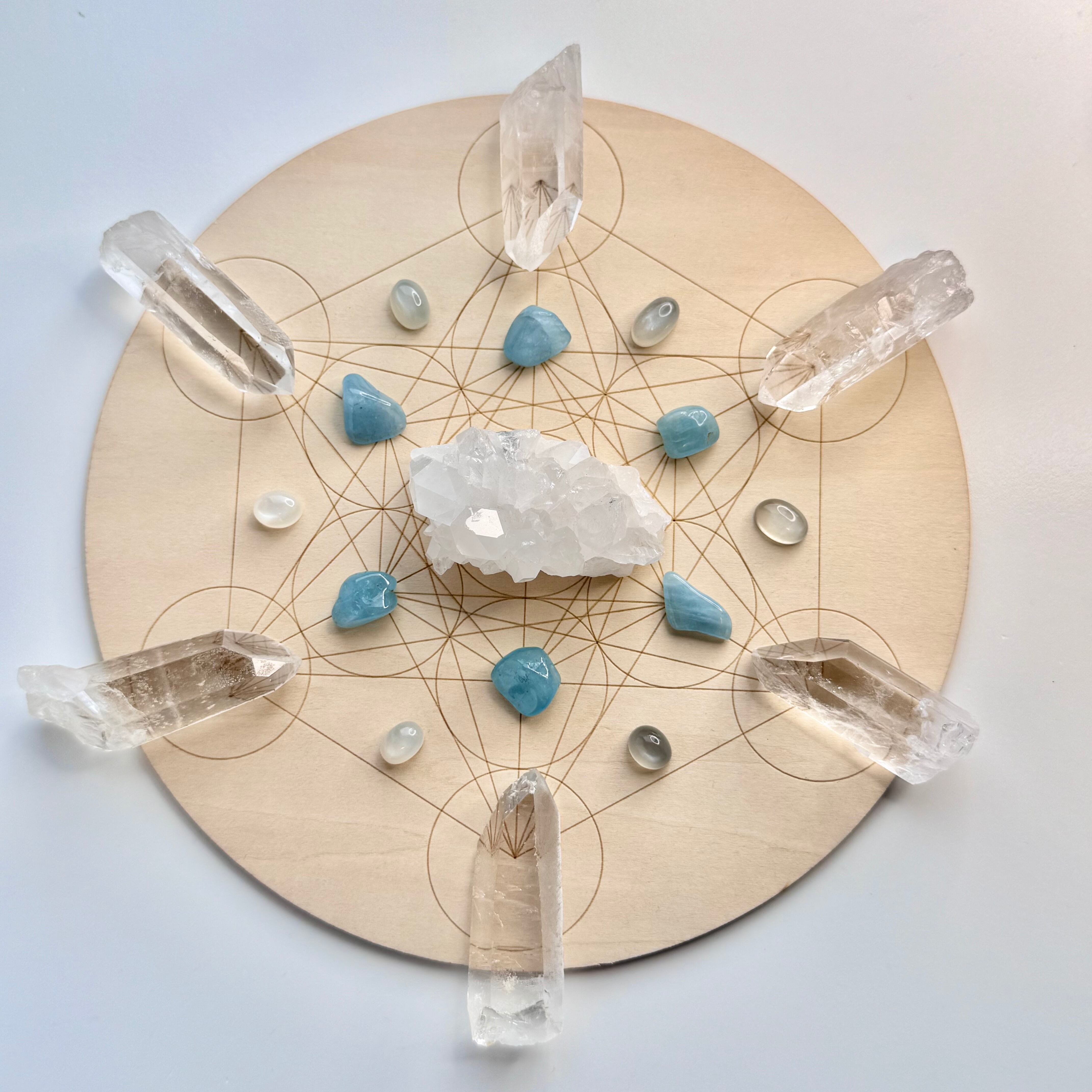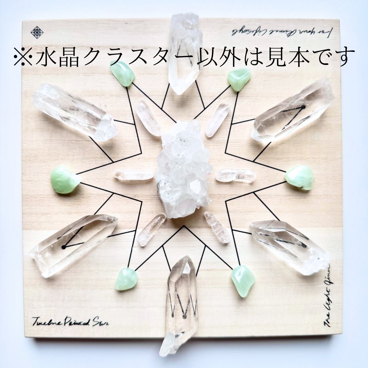8.9枚目の写真はクリスタルグリッドに乗せた時のサイズ感を見るためのもので、クラスター以外の物は含まれません。プレートのサイズは20cmです