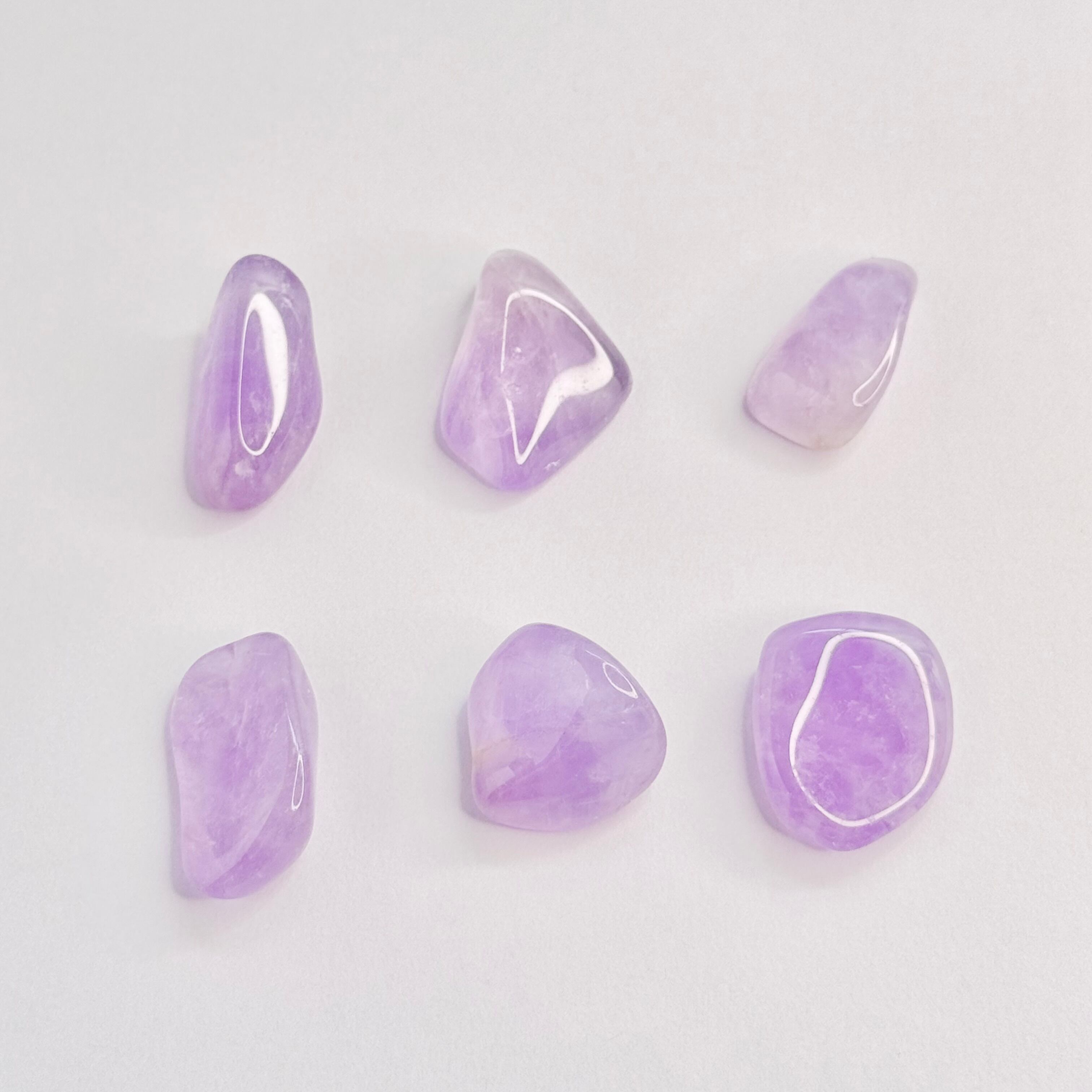 魅惑的なアメジストタンブルの6個セットは、心に安らぎをもたらす美しい天然石です。このアメジストは、ストレスを軽減し、心のバランスを整える力があると言われています。また、独特の紫色が空間を華やかに演出し、インテリアとしても素晴らしい存在感を持っています。お部屋やオフィスに置くことで、自然のエネルギーを感じることができます。