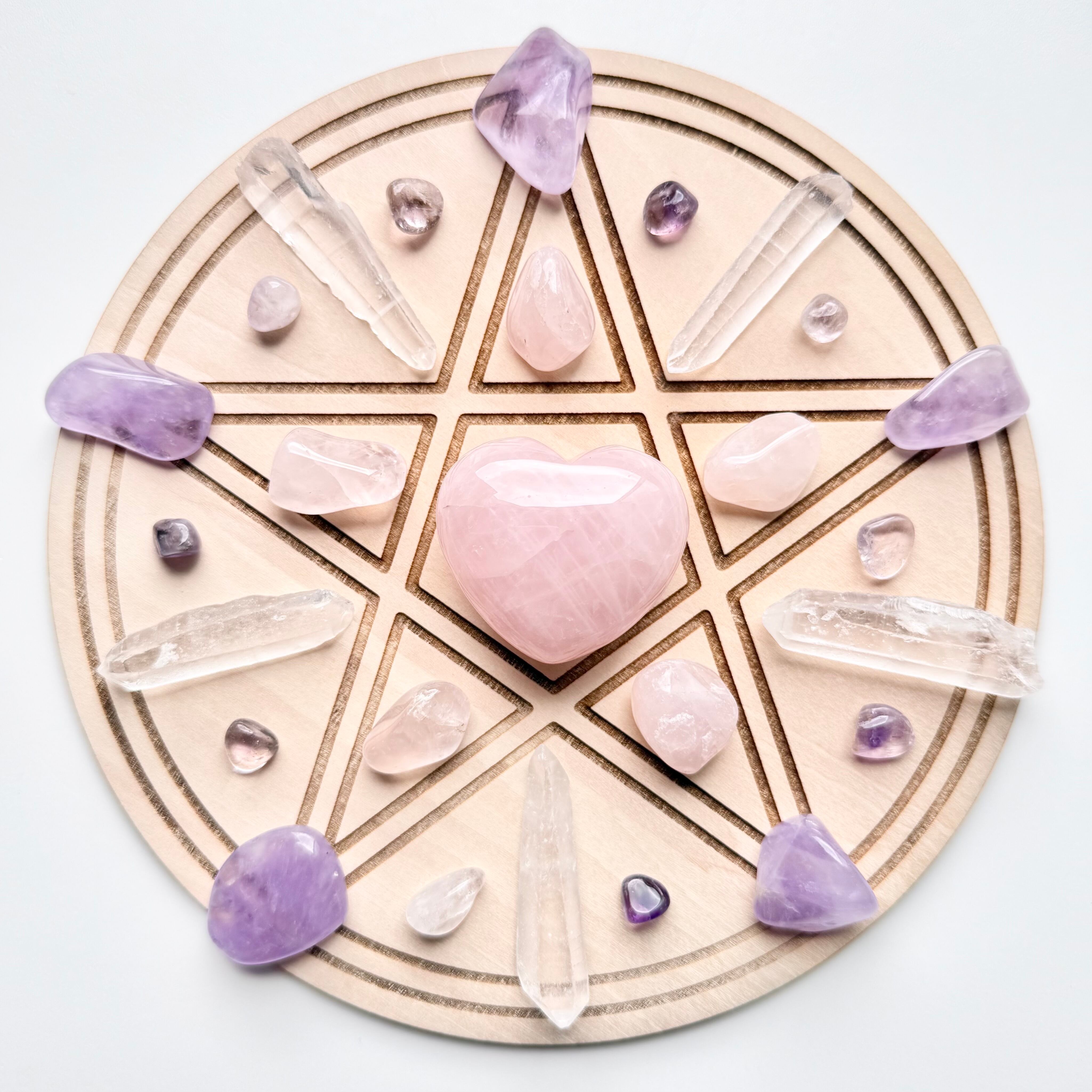 3枚目の写真はクリスタルグリッドに乗せた時のサイズを見る為のものです。アメジストタンブル以外のものは含まれません。