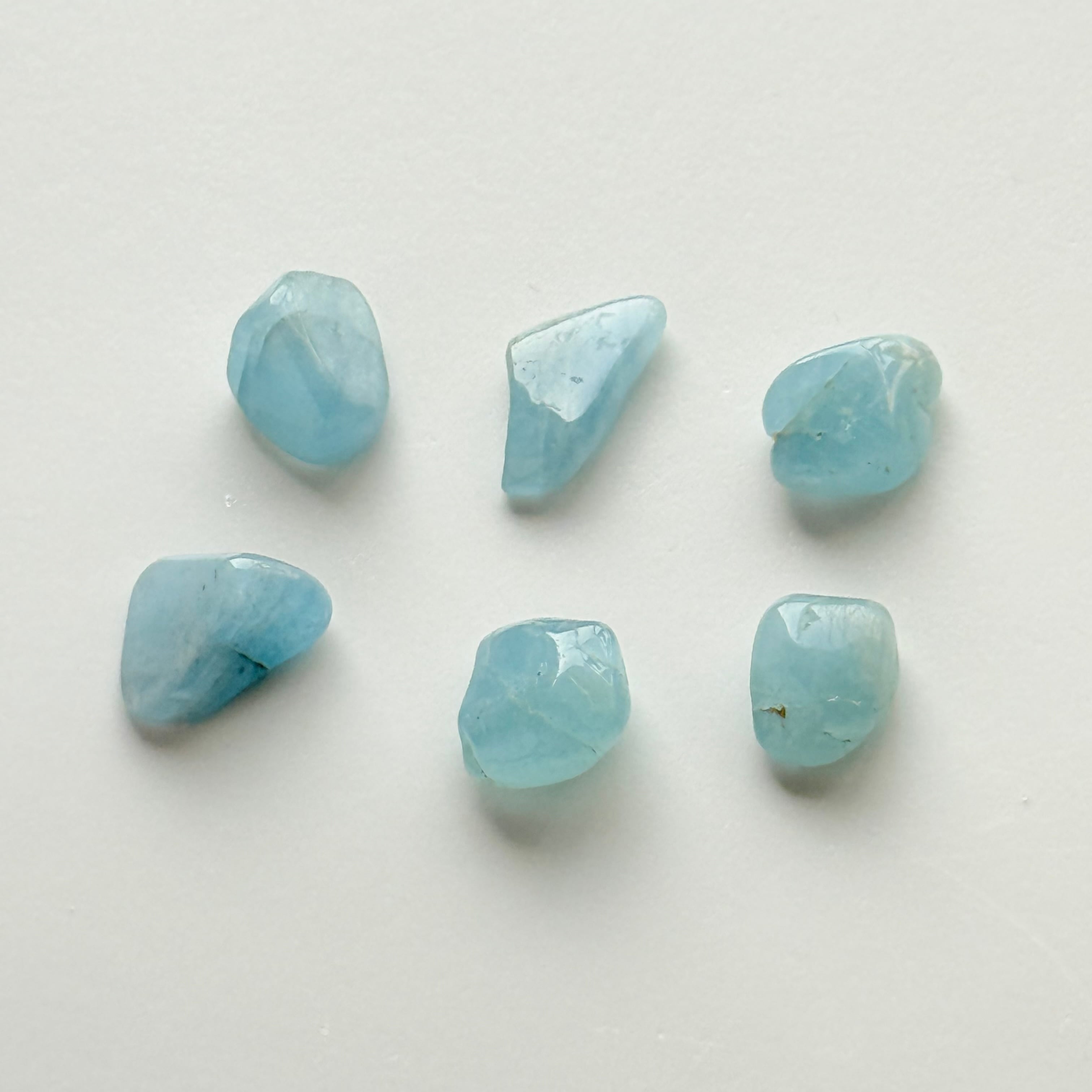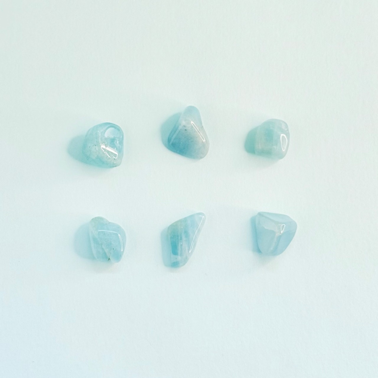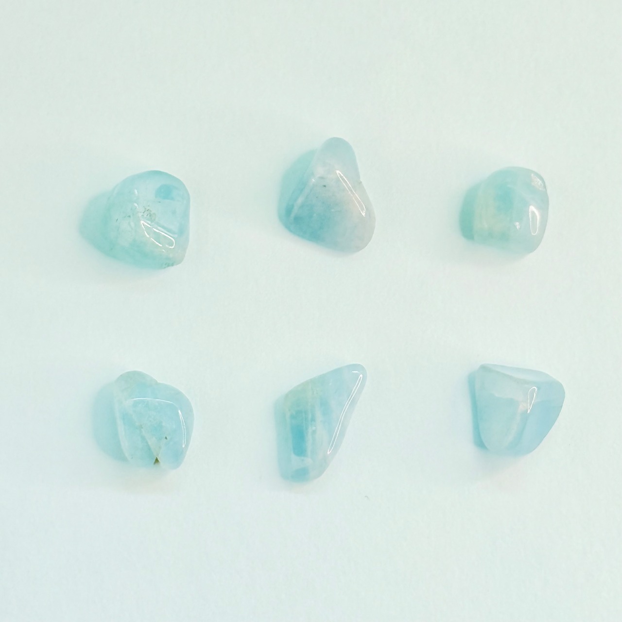 美しいアクアマリンタンブルの6個セットは、心を穏やかにし、リラックス効果をもたらす天然石です。このアクアマリンには、持ち主に平穏や安心感を与える力があり、気持ちを軽やかにするサポートをします。また、その透明感のある青色は、空間を明るく華やかに演出し、ナチュラルなインテリアとしても素敵です。お部屋やデスクに置くことで、日常生活にやすらぎをプラスすることができます。