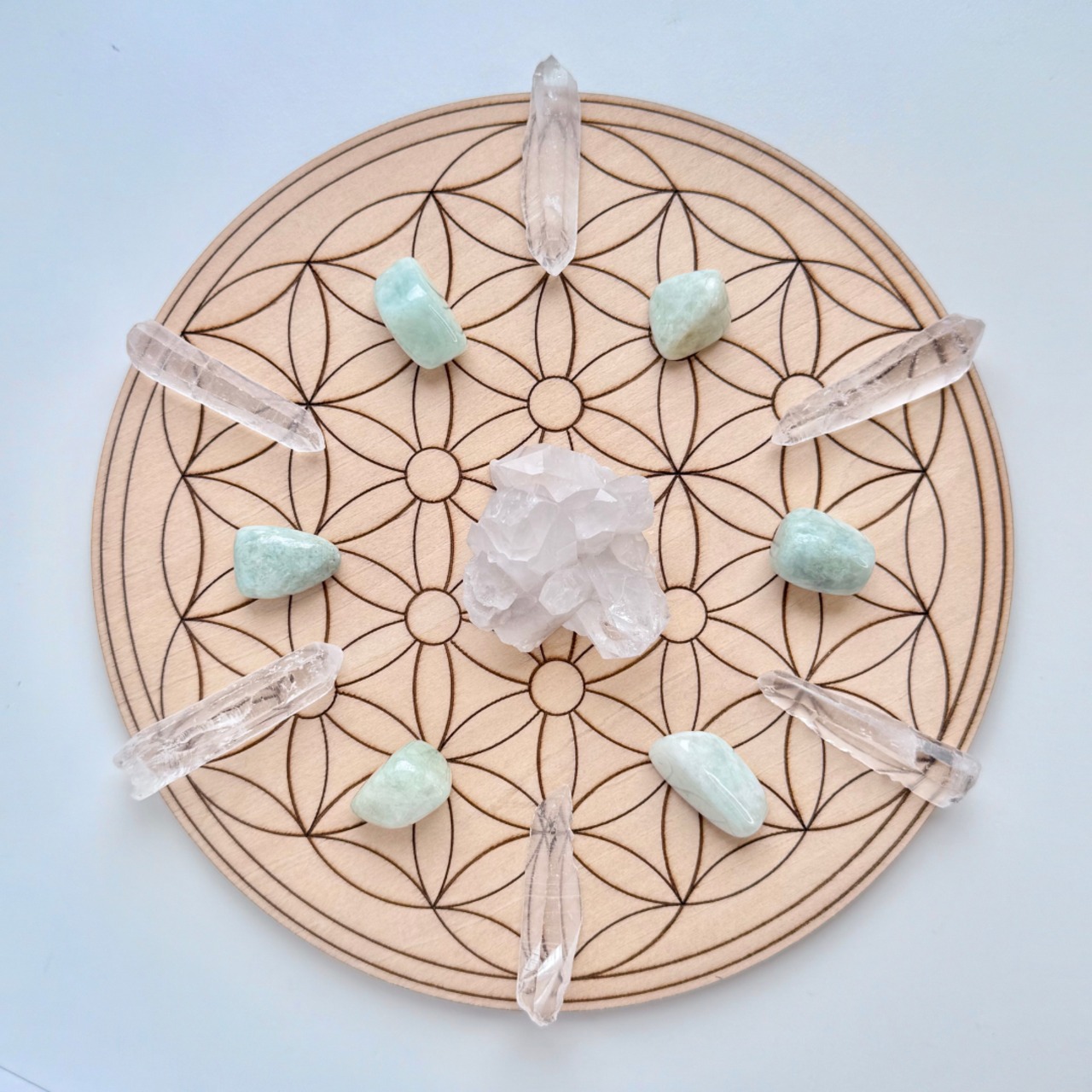 4枚目の写真はクリスタルグリッドに乗せた時のサイズ感を見る為のものです。翡翠以外のものは含まれません。