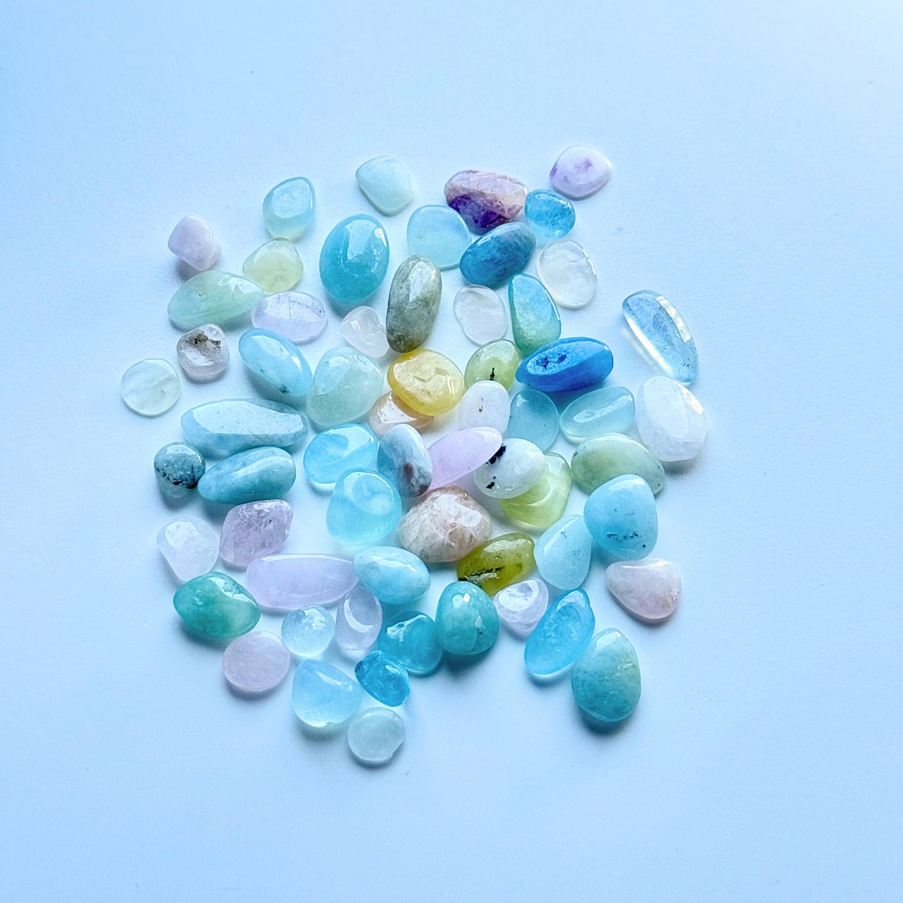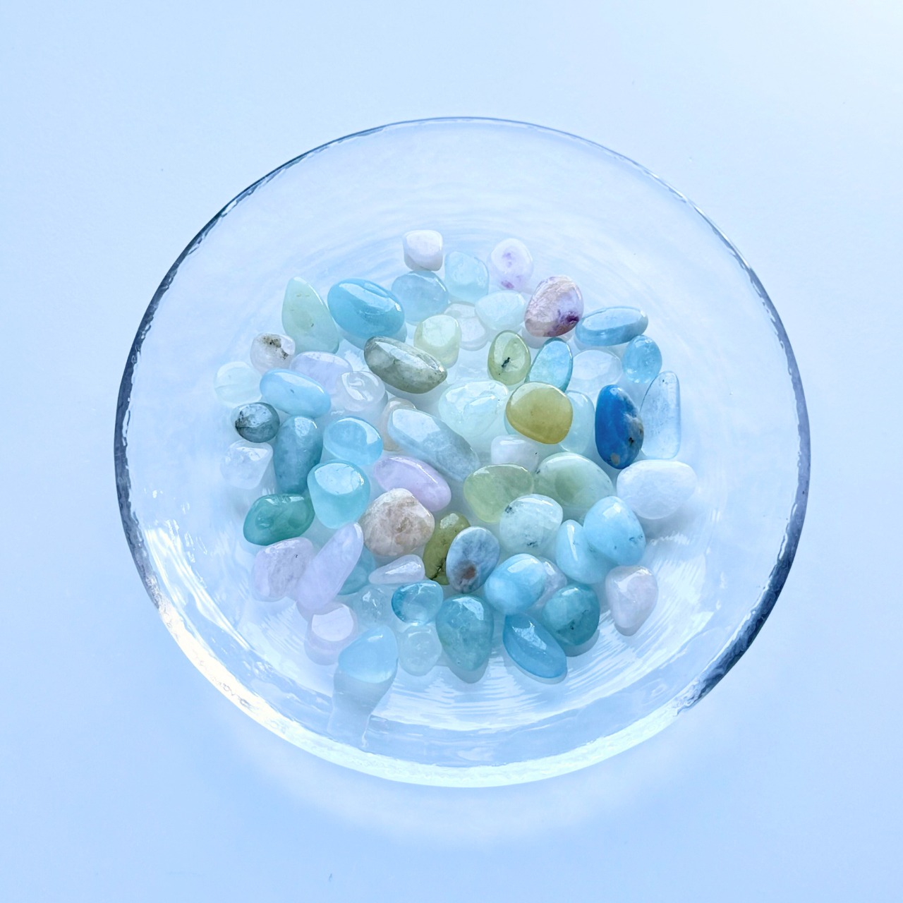 天然石の特性上、色や形状には個体差がありますが、その違いこそがこの商品の魅力の一部です。また、天然の性質により、色ムラや小さな傷が見受けられる場合もございますが、ミックスベリルの独特な個性をぜひお楽しみください。特別な一点物として、お客様のお手元に届くことを心より楽しみにしております。