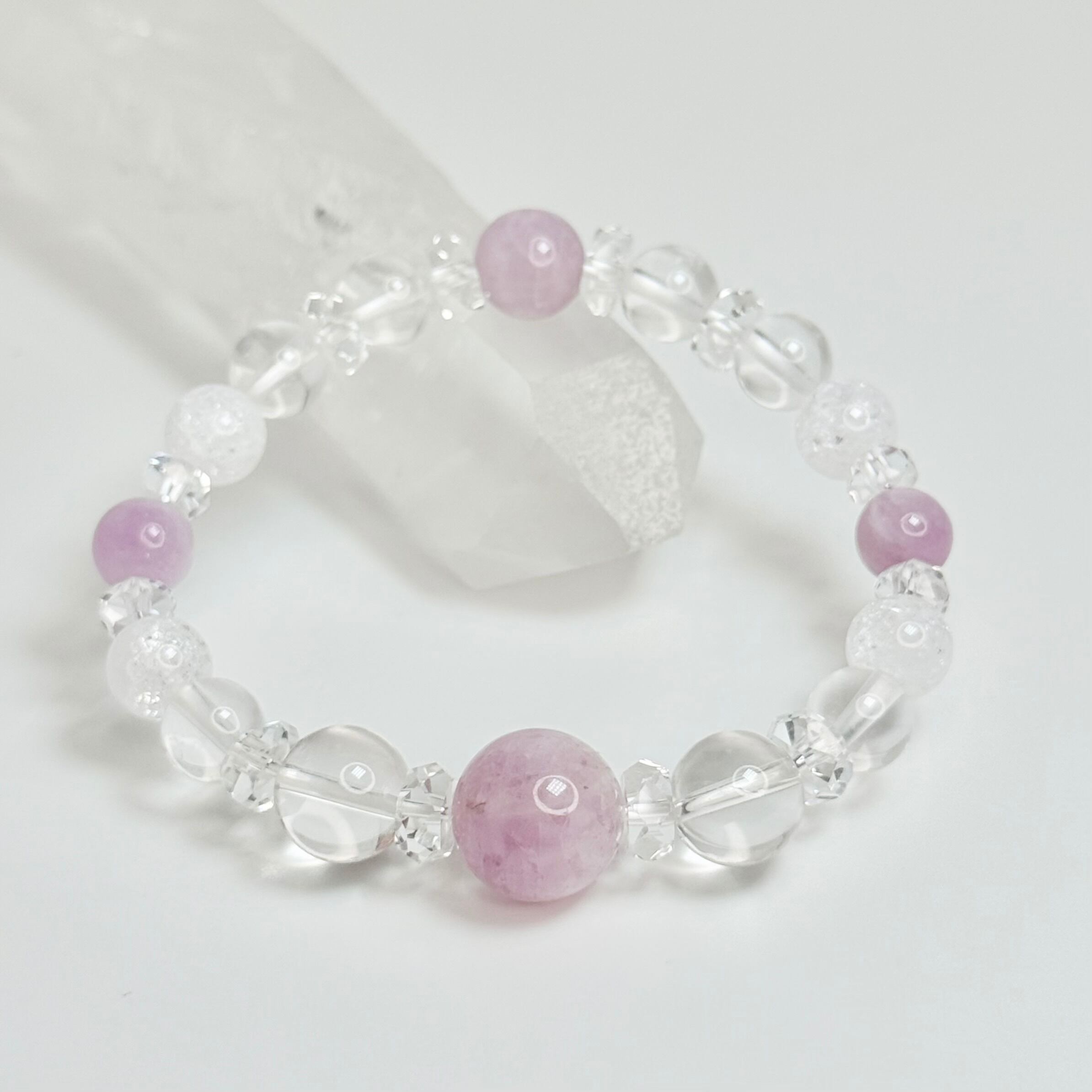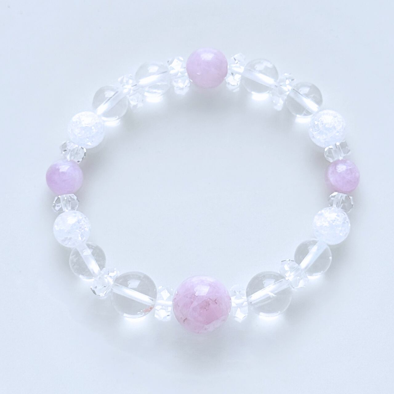 丁寧に選ばれたクンツァイトのブレスレットをお届けします。