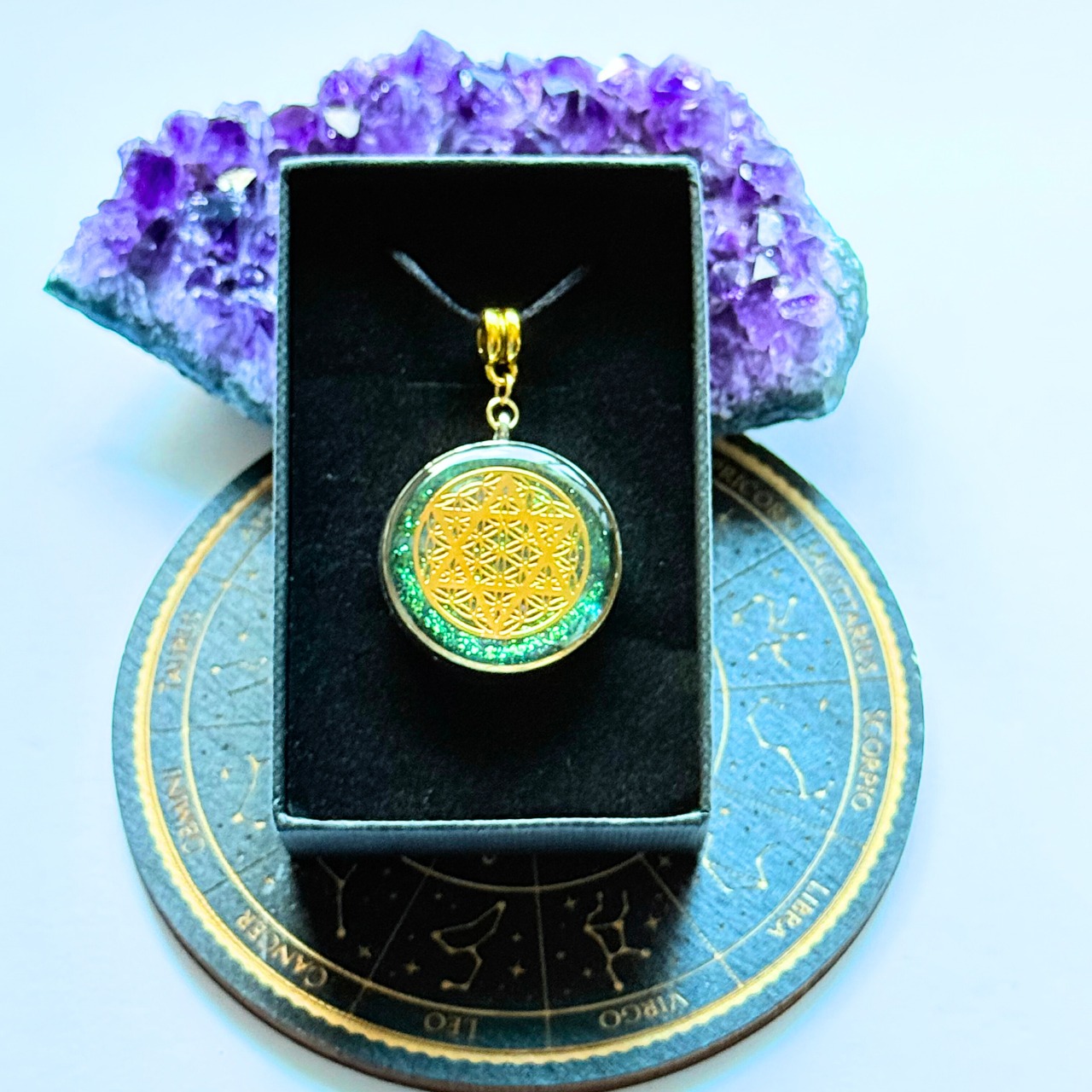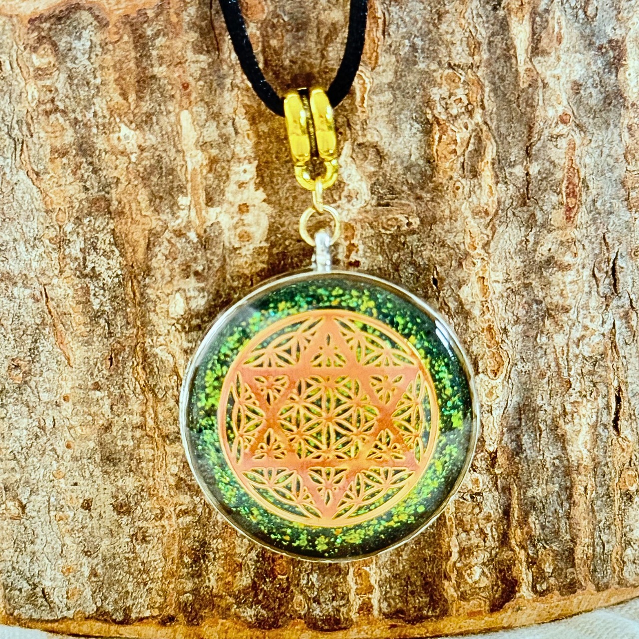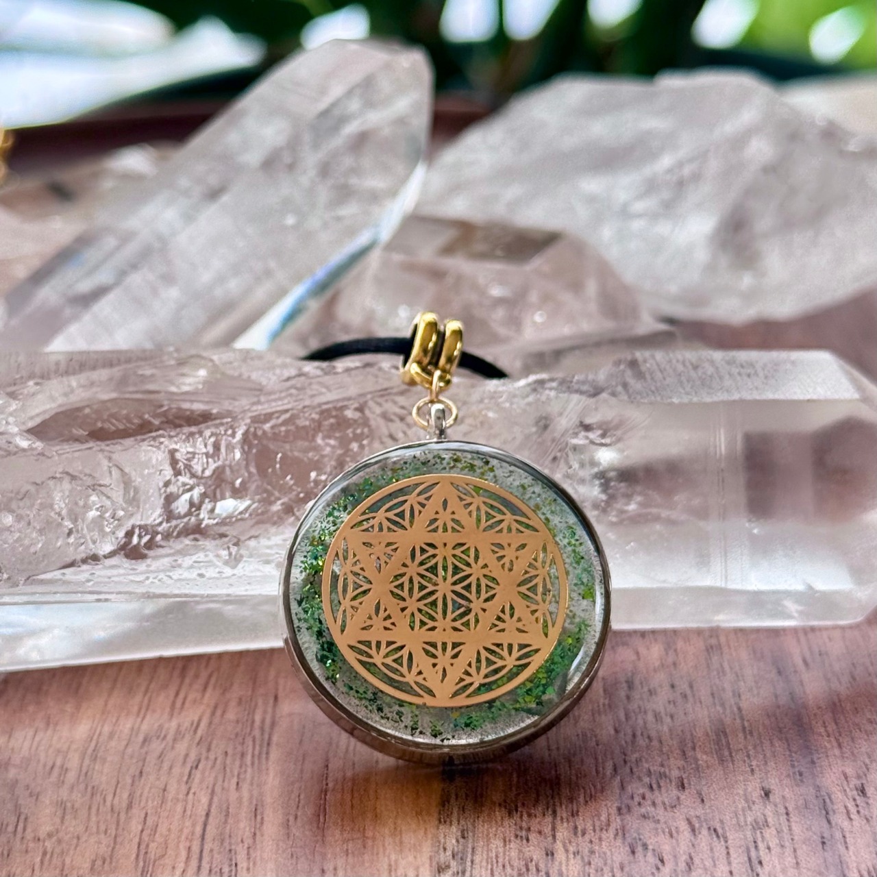オルゴナイトペンダント 六芒星×フラワーオブライフ/太陽と月