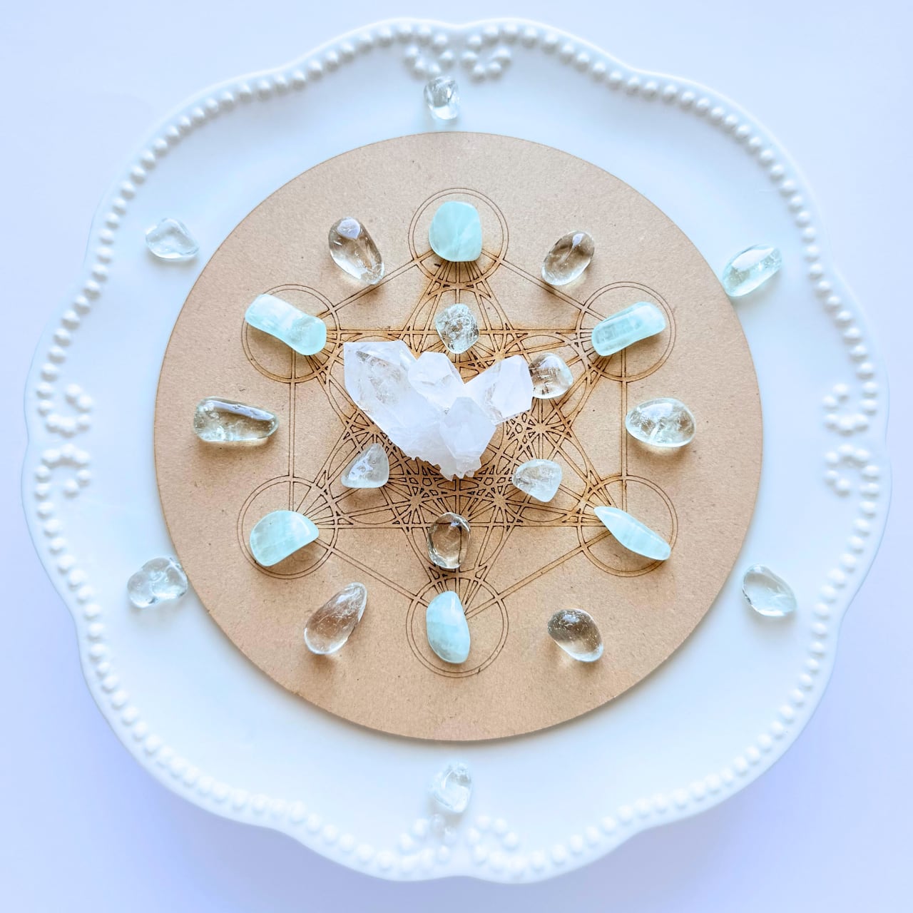 心とエネルギーを整える【クリスタルグリッドセット】メタトロンキューブ × ゼッカ産水晶クラスター