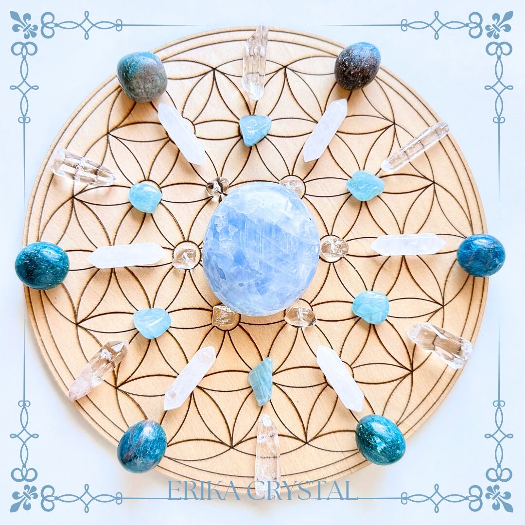 ※4枚目の写真はクリスタルグリッドにのせた時のサイズ感を見る為の物です。アパタイト以外のものは含まれません。プレートの直径は約20㎝です。