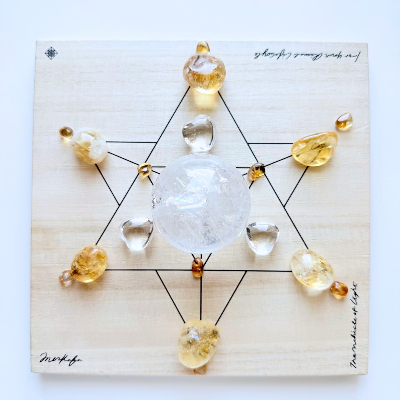 4枚目の写真はクリスタルグリッドに置いた時のサイズ感を見る為の物です。他の石は含まれません(プレートの直径は約20㎝です)